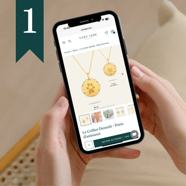Sélectionnez le modèle qui vous ressemble: collier, bracelet ou médaille. Ajoutez la personnalisation qui vous tient à cœur (empreinte digitale, empreinte de main, dessin ou écriture manuscrite).